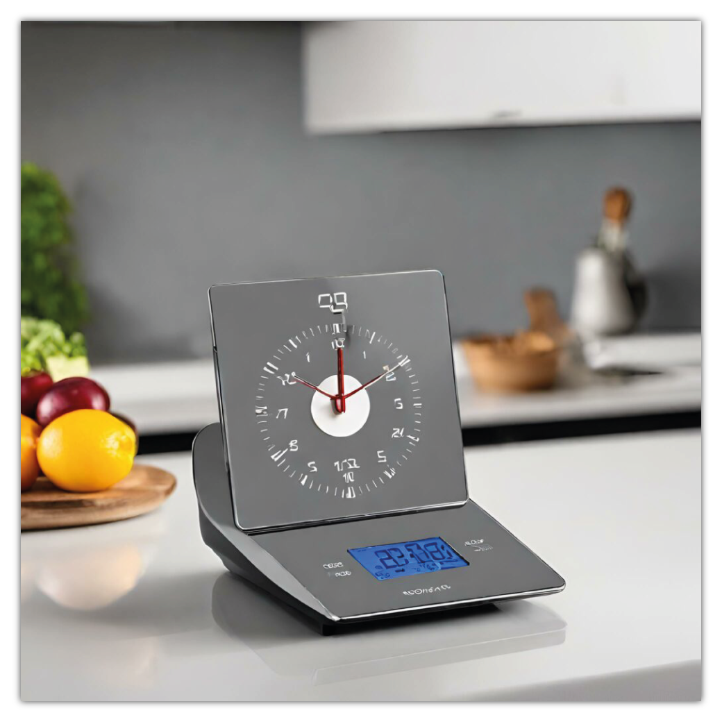 Waage und dekorative Küchenuhr